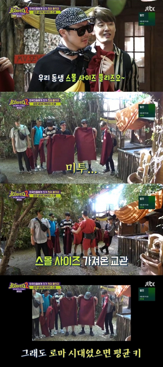 이날 방송에서 멤버들은 검투사 복을 받고 환복을 했다. 하하는 교관에게 "스몰 사이즈 플리즈"라고 말하며 자신처럼 키가 작은 곽윤기를 챙겼다. 교관은 하하에 말에 곧바로 작은 사이즈의 검투사 복을 가져왔다.