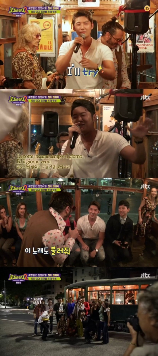 분위기가 무르익자 로큰롤을 부르던 현지 가수가 고은성에게 마이크를 넘기며 노래를 요청했다. 뮤지컬 배우 출신인 고은성은 폭발적인 성량과 가창력을 선보였다. 심지어 관객들의 떼창을 유도하는 등 여유로운 무대매너도 드러냈다. 고은성은 현지 관광객들을 감동시키며 박수갈채를 유발했다.
