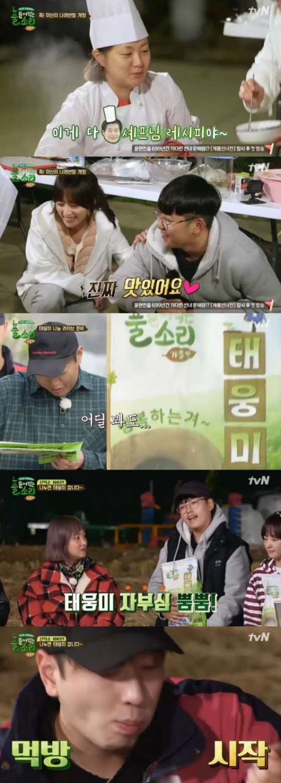 '풀 뜯어먹는 소리'에서 한태웅이 첫 수확한 '태웅미' 100포를 나눔에 성공했다.