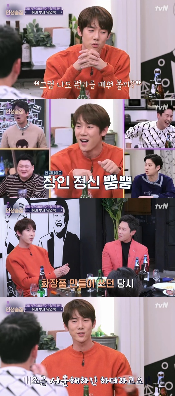 유연석은 "손호준이 바리스타 자격증을 땄다. 그래서 저는 맥주 공방에 가서 맥주를 만들어 마시는 자격증을 땄다"고 말했다. 이어 "어릴 때부터 만들기를 좋아했다. 예를 들어 연 날리기를 하면 만들기 키트를 사서 뒤에 가서 만들었다"고 설명했다. 그는 "화장품을 만들었던 적이 있다. 수제비누인데 하트 모양, 장미 모양으로 만들어서 여자친구에게 준 적 있다. 좋아했었다. 그런데 그 시간에 얼굴을 더 보고 싶어하는 등 서운해 하기도 했었다. 취미를 공유할 수 있는 사람을 만나고 싶다"고 전했다.
