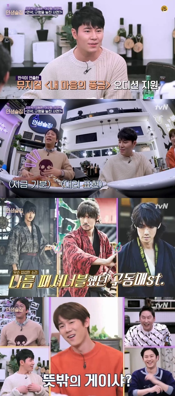 8일 오후 방송된 케이블채널 tvN 예능 프로그램 'NEW 인생술집'에서는 뮤지컬 '젠틀맨스 가이드'에 출연하는 배우 오만석, 김동완, 이규형, 유연석이 게스트로 출연했다.