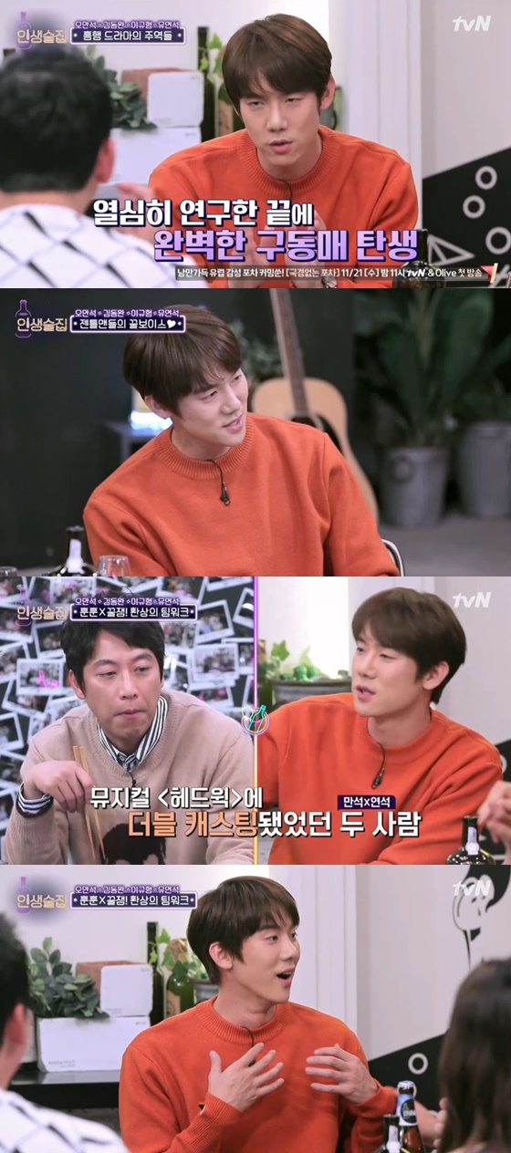 지난 8일 오후 방송된 케이블채널 tvN 예능 프로그램 'NEW 인생술집'에서는 뮤지컬 '젠틀맨스 가이드'에 출연하는 배우 오만석, 김동완, 이규형, 유연석이 게스트로 출연했다.