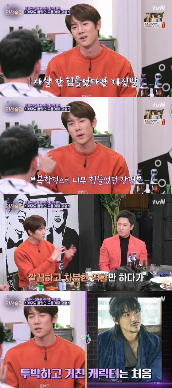 유연석은 '미스터 션샤인' 속 구동매 역할의 고충도 털어놨다. 그는 "'미스터 션사인' 전 작품이 '낭만닥터 김사부'였는데, 댄디한 역할을 하다가 사무라이 역할을 처음 해봤다. 처음에는 수염을 본을 떴었는데 제 신에서 클로즈업이 많아서 한 올 한 올 수작업을 했었다"고 말했다.