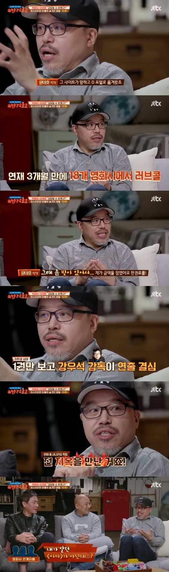 9일 오후 방송된 종합편성채널 JTBC 예능프로그램 '방구석 1열'에서는 웹툰 '이끼'를 영화화한 일화를 밝힌 윤태호 작가의 모습이 그려졌다.