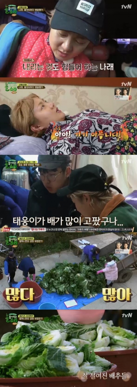풀 뜯어먹는 소리'에서 박나래가 다쳐 병원을 찾았다. 또 출연진들이 배추를 수확해 김장준비를 시작했다.