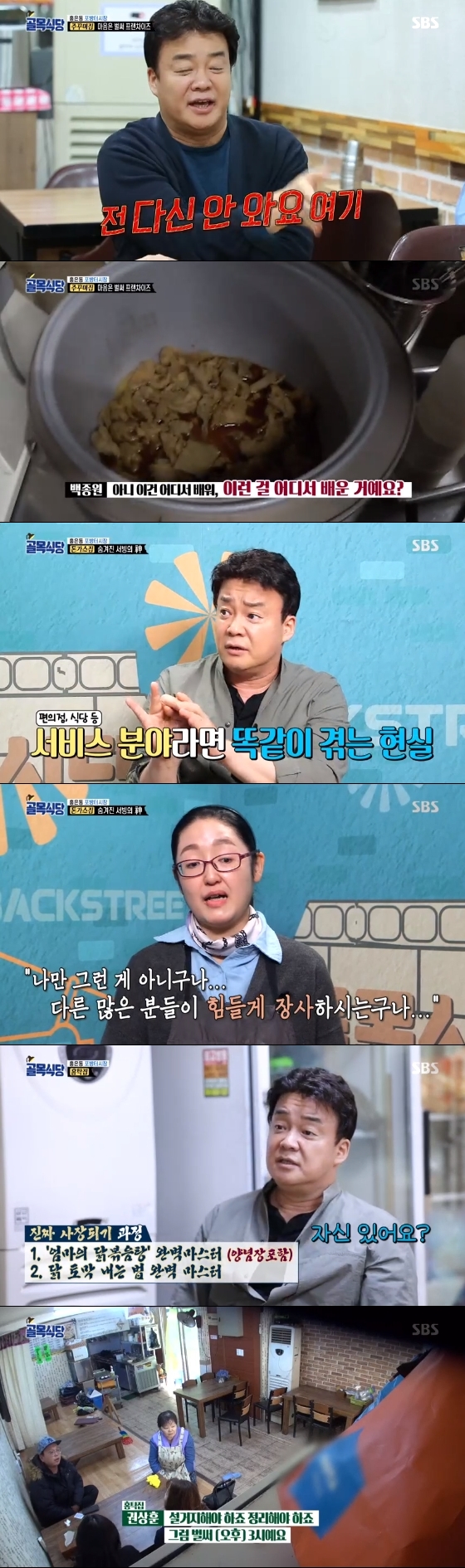 14일 오후 방송된 SBS 예능 프로그램 '백종원의 골목식당'에서는 서대문구 홍은동 포방터시장에 있는 주꾸미집, 돈가스집, 홍탁(홍어+탁주집에 방문한 백종원의 모습이 그려졌다.