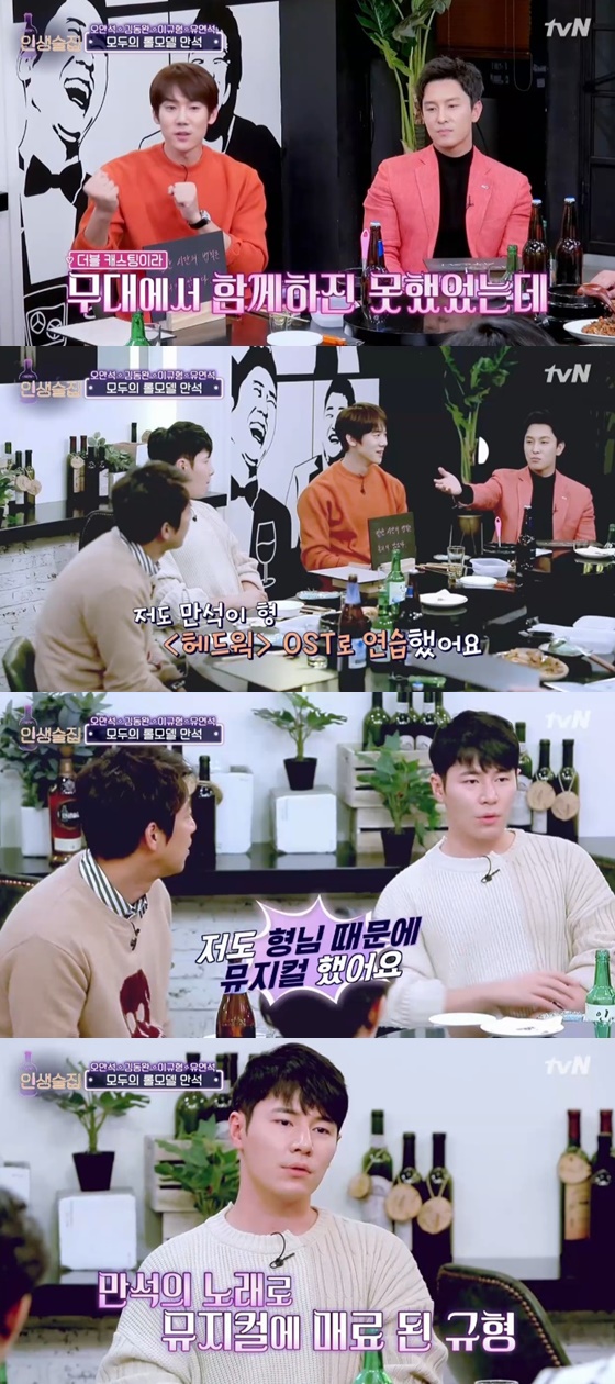 '인생술집' 유연석, 이규형, 김동완이 이구동성으로 오만석 덕분에 뮤지컬을 접하게 됐다고 밝혔다.