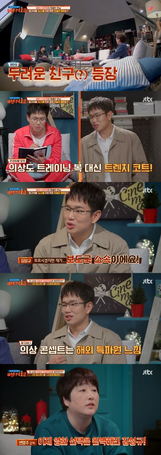 23일 오후 방송된 종합편성채널 JTBC 예능프로그램 '방구석 1열'에서는 저널리즘 영화 콘셉트에 맞게 트렌치코트를 입은 장성규의 모습이 그려졌다.