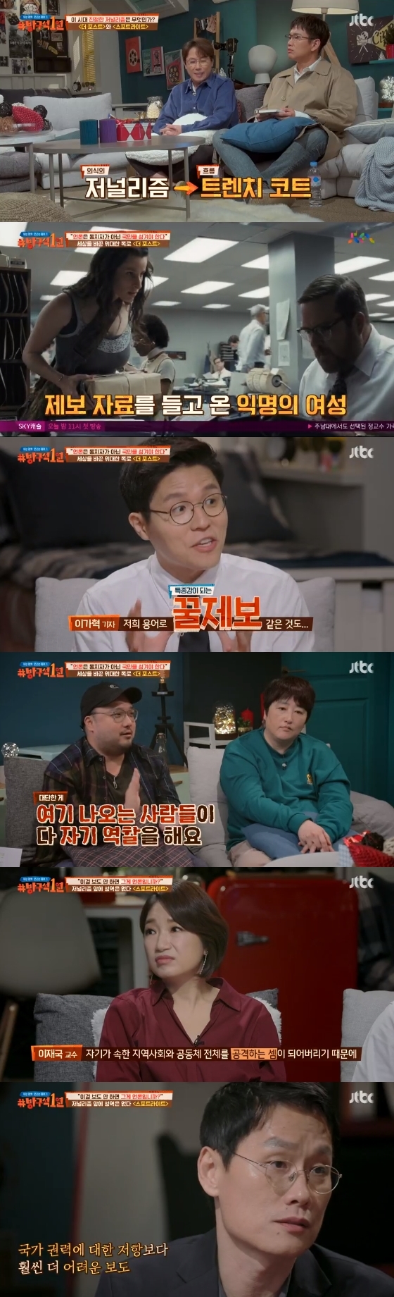 23일 오후 방송된 종합편성채널 JTBC 예능프로그램 '방구석 1열'에서는 영화 '더 포스트'와 '스포트라이트'에 대해 이야기를 나눈 출연진의 모습이 그려졌다.