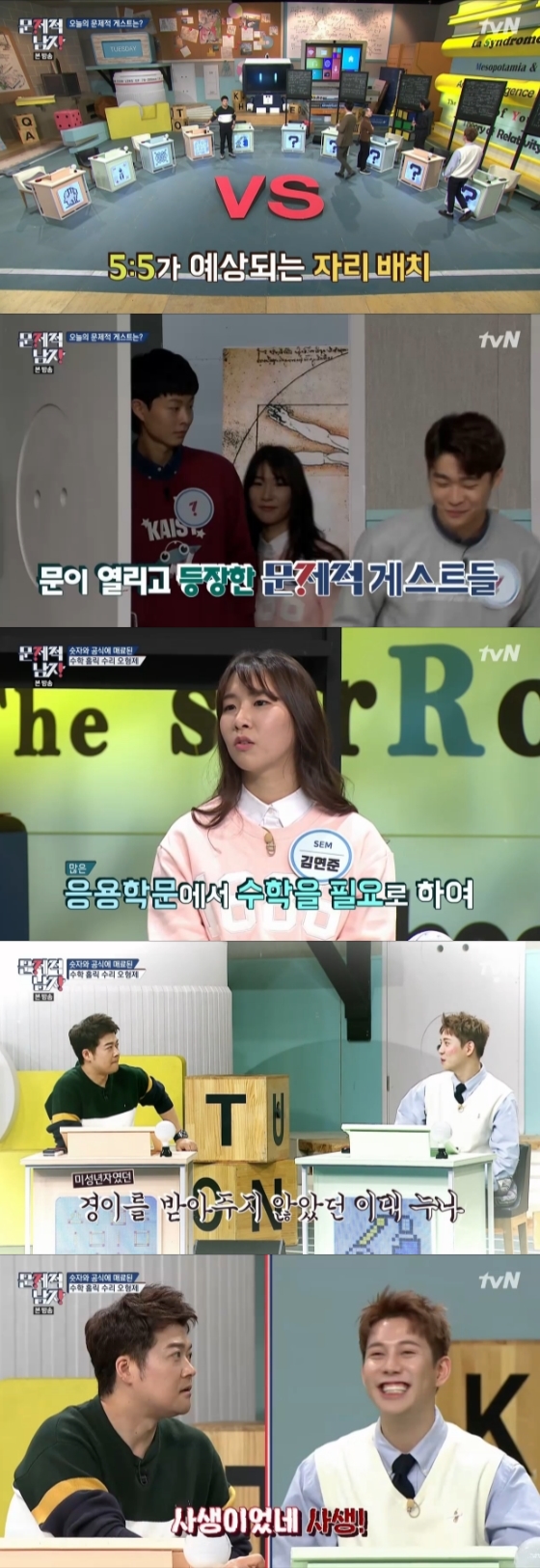 스튜디오에 칠판이 있었다. 어떤 사람들이 칠판에 수식을 적었다. 이를 본 출연진은 칠판에 적혀진 수식을 보고 당황했다. 스튜디오에는 5:5 대결로 예상되는 자리로 배치됐다.