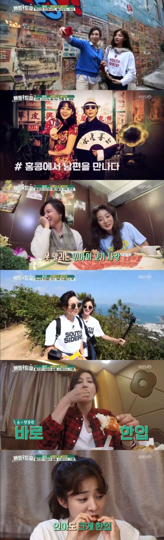'배틀트립'에서 심혜진과 설인아가 사진을 찍고 또 '먹방'을 선보이며 홍콩여행을 했다.