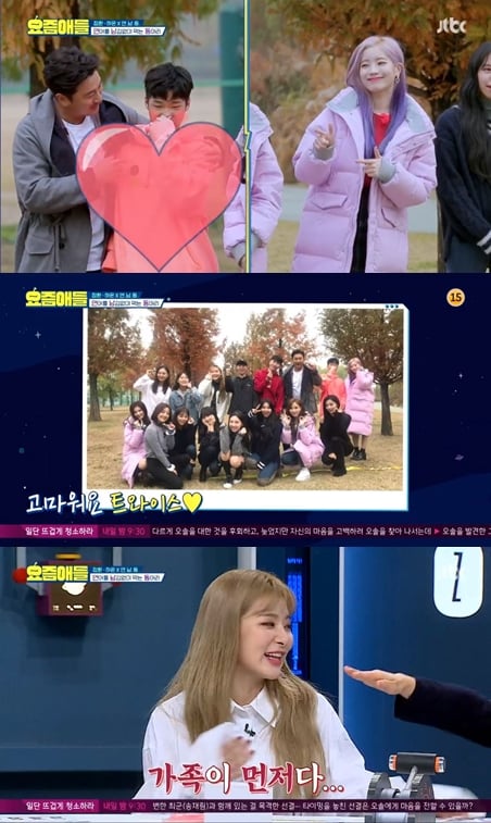 특히 김하온은 다현의 팬을 자처하며 트와이스와의 만남에 감사해했다. 이를 본 김신영이 "같은 '요즘애들'의 멤버 슬기가 있다"고 말하자, 김하온은 "가족이 먼저다"라며 슬기를 챙겼다.