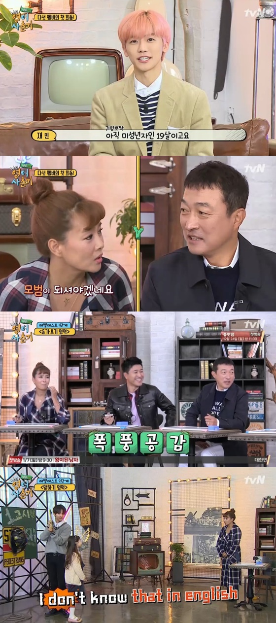 20일 오후 방송된 케이블채널 tvN 예능 프로그램 '나의 영어사춘기 100시간'에서는 이재룡, 김원희, 김종민, 이사배, 그룹 NCT 멤버 재민이 영어 레벨 테스트를 하는 모습이 그려졌다.