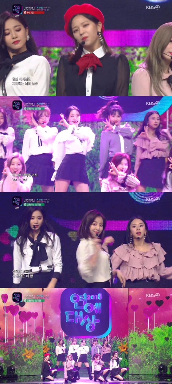 인기 걸그룹 트와이스가 2018 KBS 연예대상에 등장, 축하 공연을 했다.