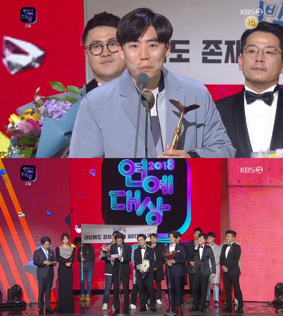이번 수상으로 '1박2일'은 2015년, 2016년(2017년은 연예대상 無)에 이어 3연속으로 같은 상을 수상하면서 KBS 예능 중 최고 사랑 받는 프로그램임을 입증하게 됐다.