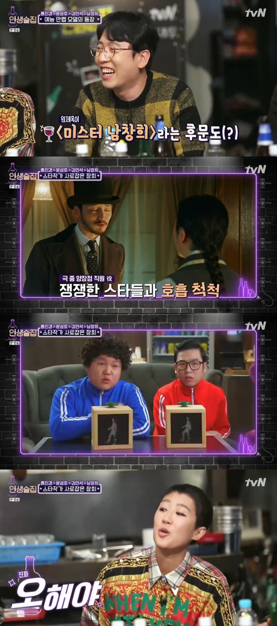27일 오후 방송된 케이블채널 tvN 예능 프로그램 'NEW 인생술집'에서는 일명 '홍진경과 아이들'로 불리는 홍진경, 윤성호, 김인석, 남창희가 게스트로 출연했다.