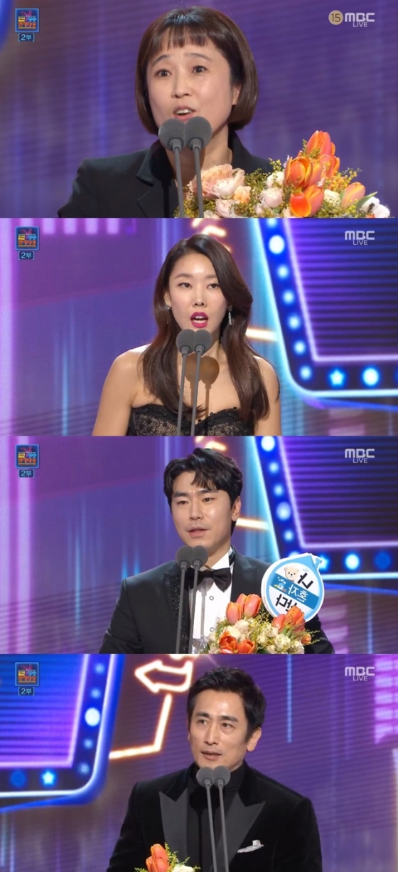 '전지적 참견 시점'의 송은이는 "MBC 시상식에 26년 만에 처음 왔는데 상을 받게 돼서 너무 기분이 좋다"라며 "1년간의 순간들이 주마등처럼 지나갔다. 프로그램을 시작할 때 당시만해도 전현무씨 말고는 내세울 게 없는 사람들이었다. 매니저들, 스태프들 덕분에 '전참시'가 많은 사랑을 받은 것 같다. '전참시'가 많은 상을 받아서 기분이 좋다"고 말했다.