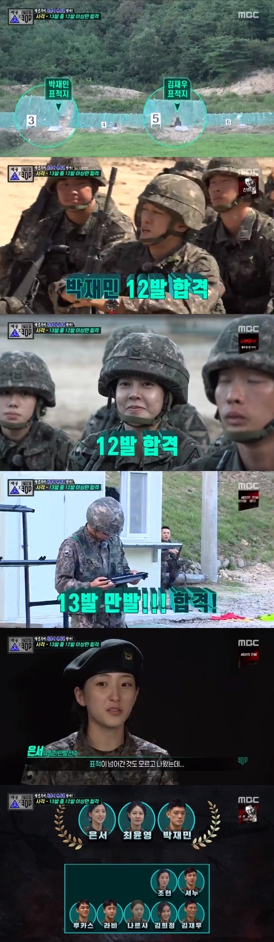 '진짜 사나이 300'에서 박재민, 은서, 최윤영이 사격 평가에 합격했다.