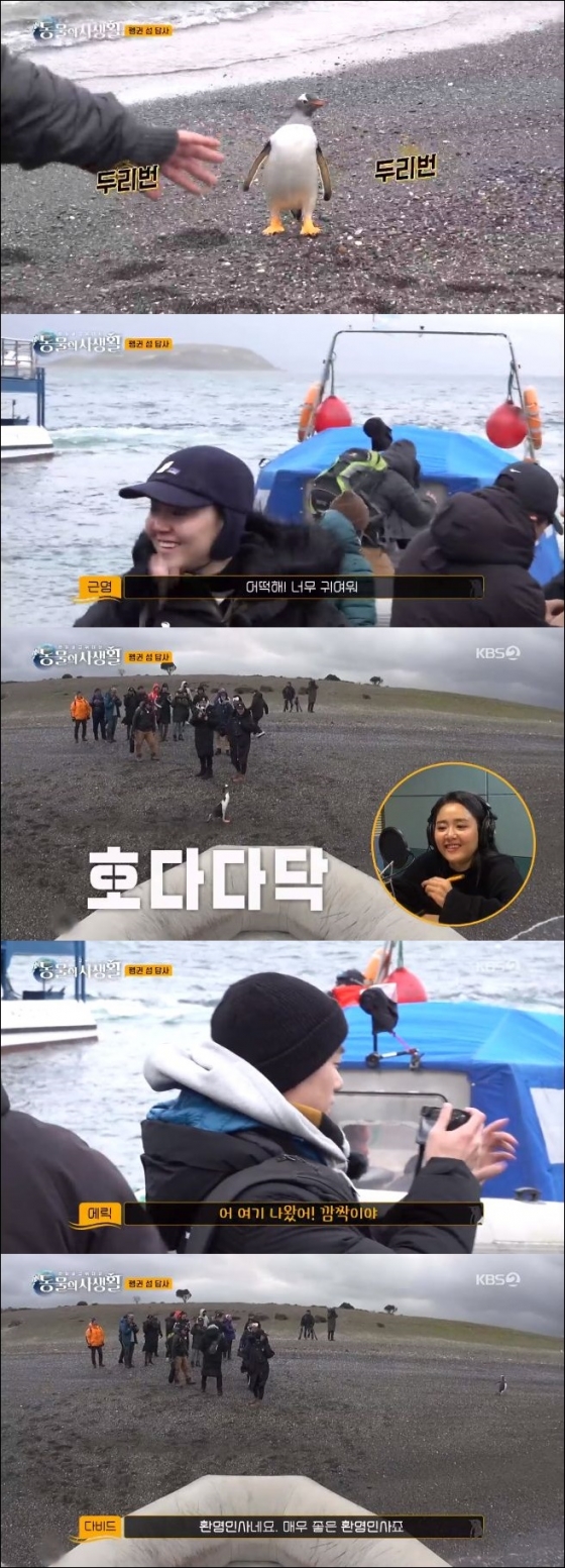 4일 오후 방송된 KBS 2TV 예능프로그램 '은밀하고 위대한 동물의 사생활'에서 문근영, 에릭남, 김혜성이 우슈아이아에서 펭귄 다큐멘터리 촬영을 시작했다.