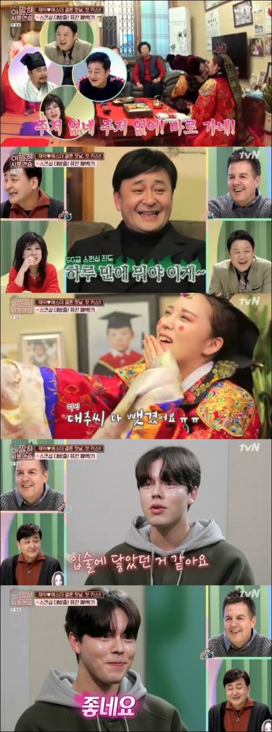 '아찔한 사돈연습'에서 하재익과 문에스더가 전통 혼례를 올린 가운데, '대추키스'를 했다.