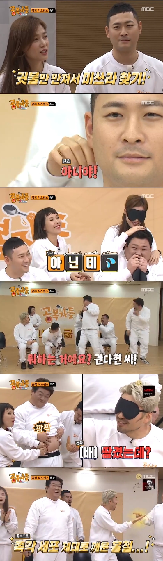 11일 오후 방송된 MBC 예능프로그램 '공복자들'에서는 권다현이 눈을 가린 채 귓불만 만져서 남편 미쓰라진을 찾아봤지만, 김준현을 지목했다.