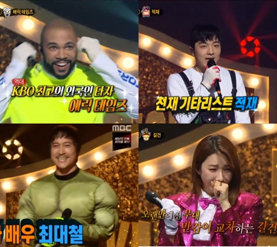 '복면가왕'에 출연한 길건과 최대철 적재 그리고 야구선수 에릭 테임즈가 역대급 반전을 선사했다.
