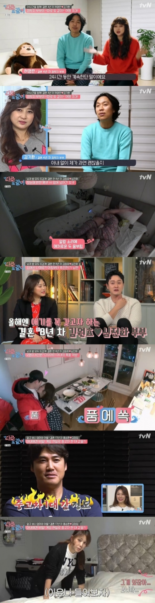 20일 방송된 tvN '따로 또 같이'에서는 부부 독립 여행에 새롭게 합류하게 된 허영란-김기환, 김원효-심진화, 홍성흔-김정임 세 부부의 일상이 공개됐다.