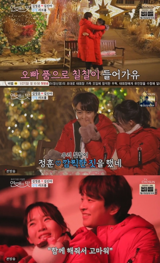 김진아가 '러브홀 스킨십'을 하자 김정훈은 김진아에게 백허그를 했다. 김정훈은 김진아에게 "함께 해줘서 고마워"라고 말했다.