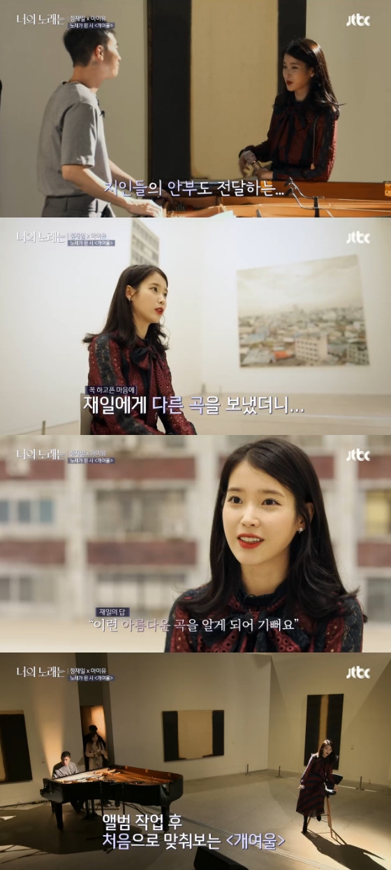 31일 오후 방송된 종합편성채널 JTBC 새 특별기획 '너의 노래는'에서는 정재일을 찾은 아이유의 모습이 그려졌다.