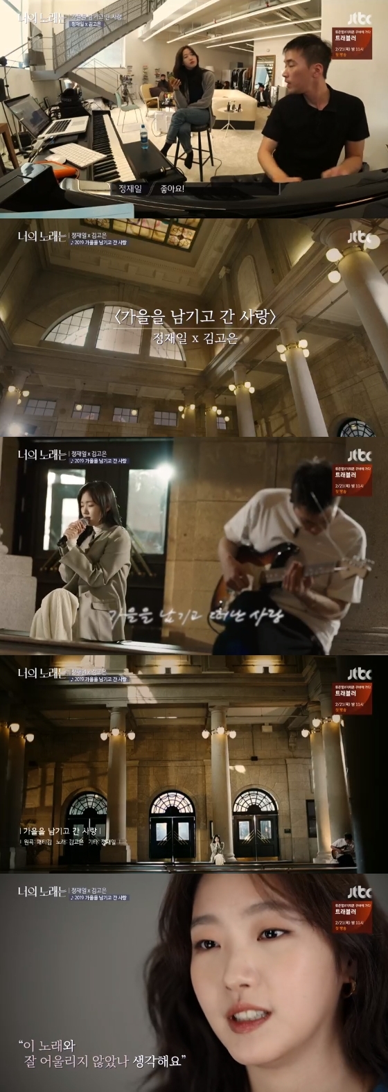 7일 오후 방송된 JTBC 예능 프로그램 '너의 노래는'에서 배우 김고은이 음악감독 정재일과 함께 패티킴의 '가을을 남기고 간 사랑'을 리메이크했다.