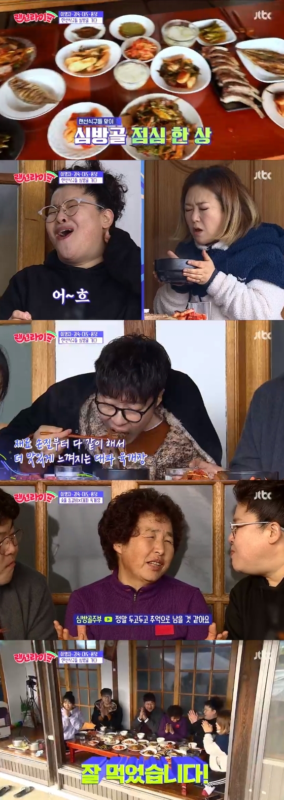 출연진은 등갈비구이, 대파 육개장, 도토리 묵무침 등 다른 음식들을 완성했다. 그리고 한 상에 반찬들을 올리고 점심을 먹었다. 출연진은 맛있는 나머지 감탄사를 연발했다.