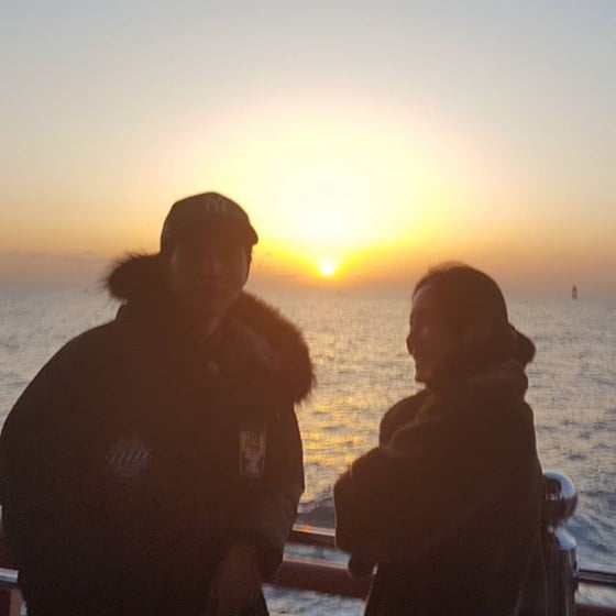 이어 공개된 사진은 석양을 배경을 함께 서있는 강경헌과 구본승의 모습이다. 입가에 웃음을 머금고 있는 두 사람의 모습에서 따스한 분위기가 느껴진다.