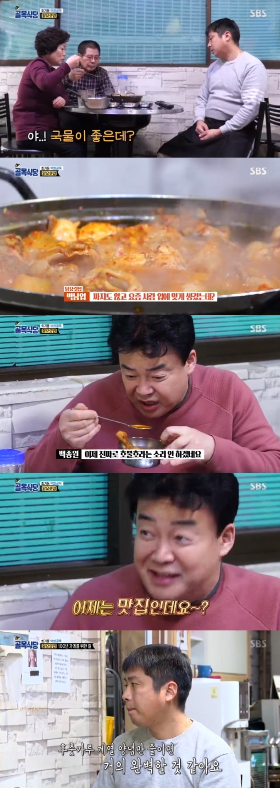 13일 오후 방송된 SBS 예능 프로그램 '백종원의 골목식당'에서 백종원이 닭요릿집의 닭볶음탕을 먹어보고 칭찬했다.