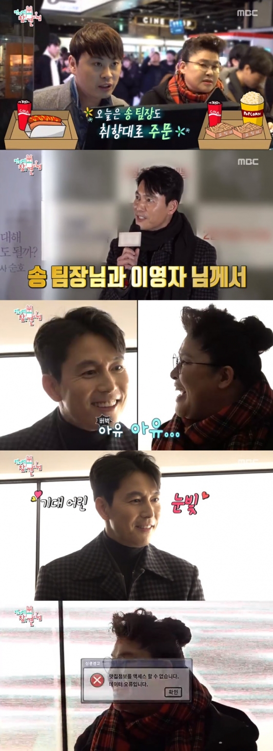 이어 정우성은 '전참시'의 애청자로서 날카로운 질문도 했다. 송팀장에게 "먹바타이지 않냐. 이영자가 추천한 메뉴 중 맛이 없던 것은 없었냐"고 물었고, 송팀장은 "실패한 적은 없었다. 선배님이 얘기하신 건 열이면 열 정답이더라"며 웃었다.