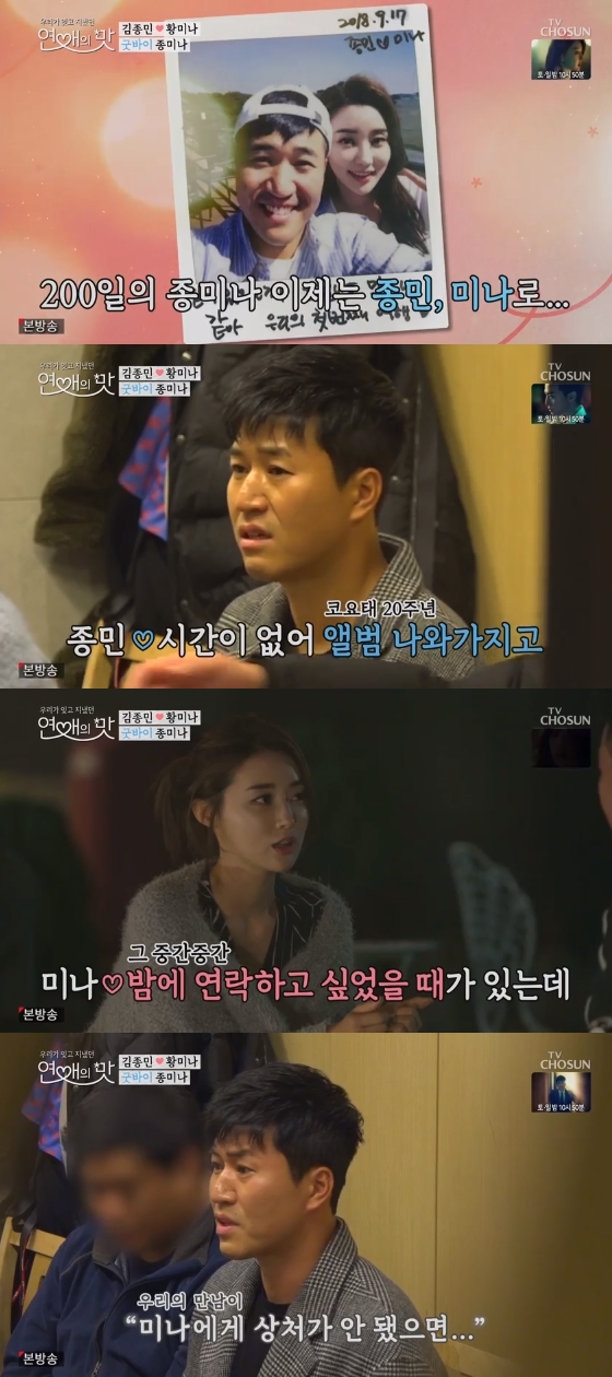 김종민은 앨범 준비 때문에 바빴고, 이 때문에 황미나와 연락이 잘 안 됐다고 전했다. 더군다나 프로그램 촬영에만 데이트했고, 이에 황미나가 일할 때만 본다고 생각했을 거라고 예상했다.