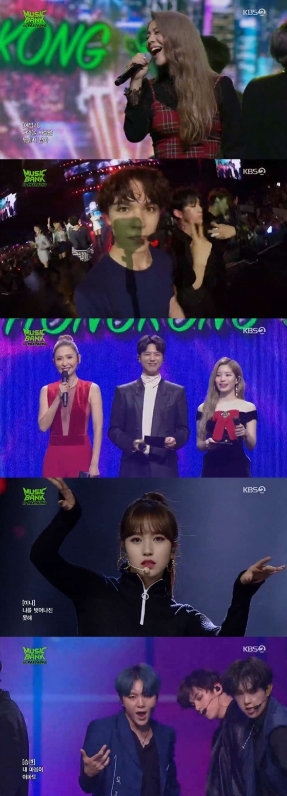 23일 오후 방송된 '뮤직뱅크 인 홍콩'은 한국을 대표하는 최고 아티스트들의 뮤직 페스티벌 일환으로 기획, KBS WORLD를 통해 전세계 117개국으로 방송되는 문화 교류 콘서트다. 트와이스, 에일리, FT아일랜드, 몬스타엑스, 세븐틴, 뉴이스트W 등이 출연했다.