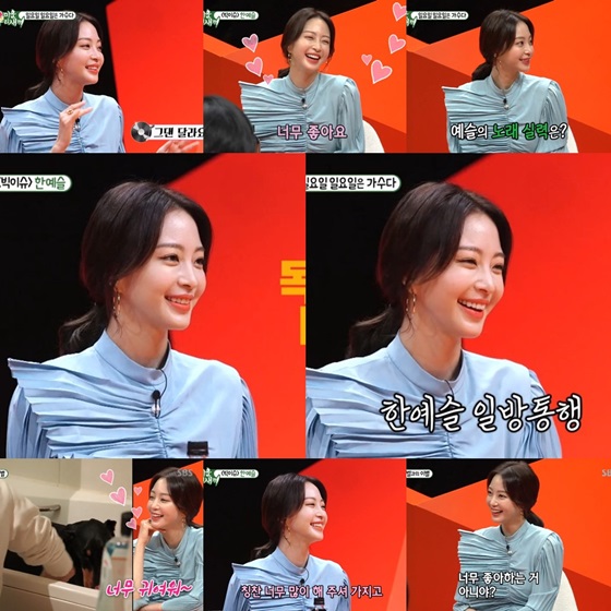 이어 지금까지도 많은 사랑을 받고 있는 히트곡인 '그댄 달라요'를 즉석에서 부르며 청아한 목소리를 아낌없이 뽐냈다. 특히 배정남의 에피소드에서 그의 애완견인 벨을 보며 귀여움을 참지 못하는 모습은 보는 이들까지 한예슬에 빠져들게 만들었다.