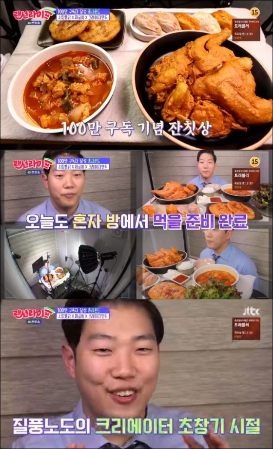 '랜선라이프'에서 유튜버 홍사운드가 100만 구독자를 기념해 먹방을 진행했다.