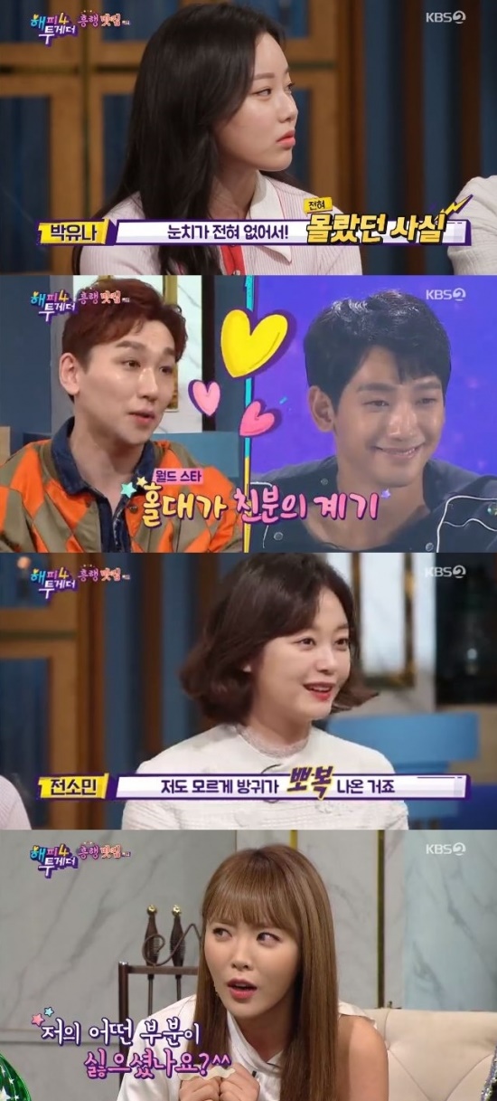 이날 '해피투게더4'에서는 '흥행 맛집' 특집으로 꾸며져 전소민, 홍진영, 박유나, 조빈, 김호영이 출연해 입담을 과시했다.