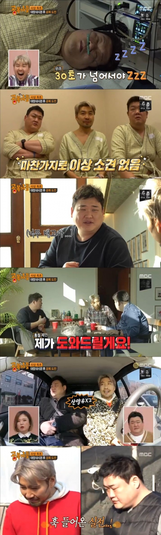 이들은 수면 내시경이 끝나자마자 바로 공복을 시작했다. 김준현은 잠에서 덜 깬 상태에서도 공복 시계를 찾았다. 유민상 역시 잠에서 덜 깬 상태에서 공복 시계를 찾았다. 유민상은 밥을 먹겠다는 의지 하에 공복 시계 스타트를 눌렀지만 제대로 누르지 않아 작동하지 않았다. 이를 영상으로 본 출연진들은 탄식했다.
