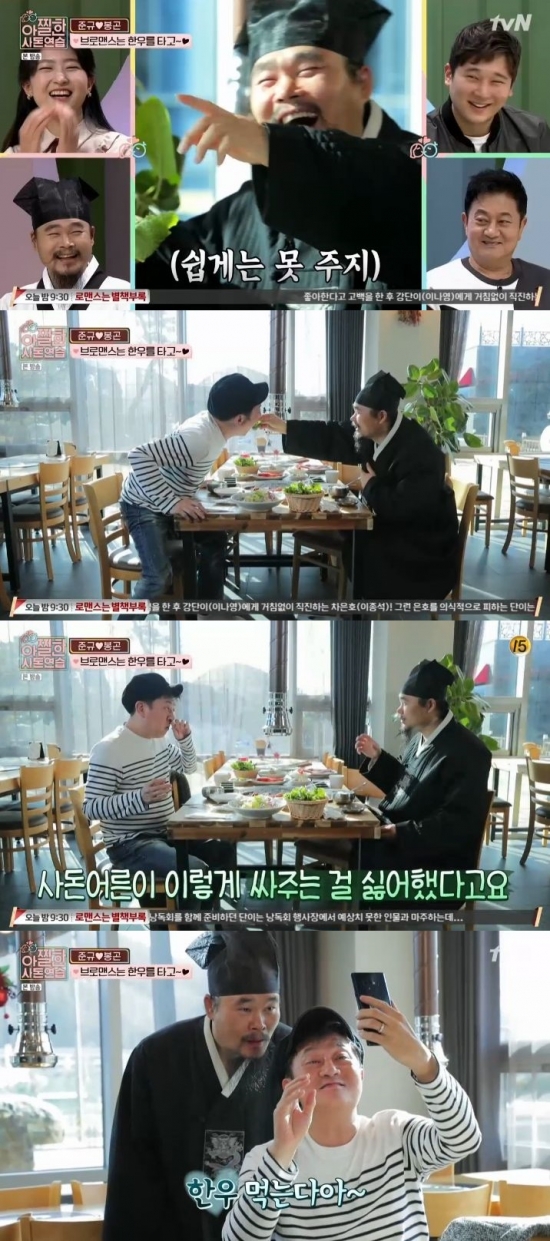 2일 오후 방송된 케이블채널 tvN 예능프로그램 '아찔한 사돈연습'에서는 박준규와 김봉곤이 하루를 같이 보내는 장면이 그려졌다.