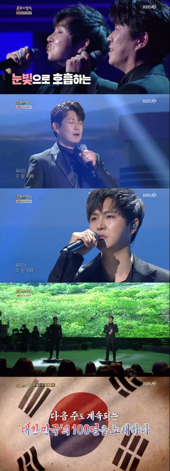 첫번째 무대에서 SF9은 정수라의 '아! 대한민국'을 통해 88 서울 올림픽의 흥분과 설렘의 기분을 재해석해 극찬을 받았다. 이들에 맞선 윤충일과 김준수는 이애리수의 '황성옛터'와 '각설이 타령'을 통해 50년이 넘는 세대 차이를 극복하고 대한민국 100년 역사를 소리 하나로 풀어내어 1승을 차지했다.