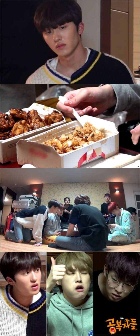 '공복자들'에 등장한 그룹 SF9의 찬희가 치밥(치킨+밥) 앞에서 OTL 자세로 좌절한 모습이 포착됐다.