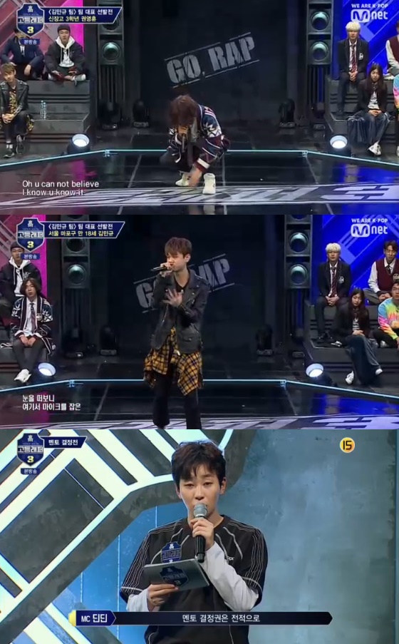 8일 오후 방송된 Mnet 예능 프로그램 '고등래퍼3'에서 김민규팀에서 권영훈이 자신만의 스타일로 1위를 차지했다.