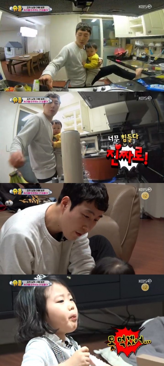 17일 오후 방송된 KBS 2TV 예능프로그램 '해피선데이-슈퍼맨이 돌아왔다'에서는 장범준이 장조아, 장하다의 육아를 책임지는 장면이 그려졌다.