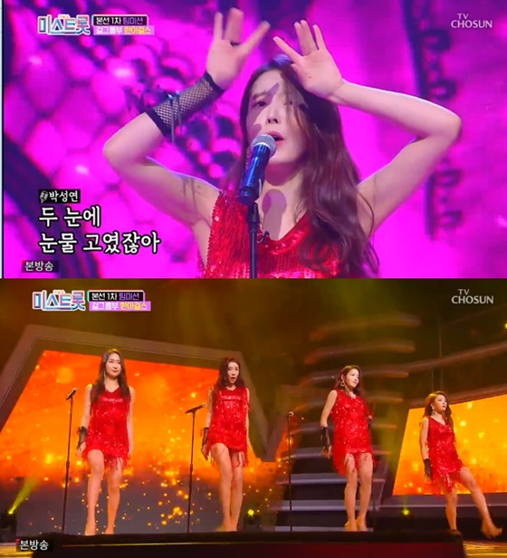 먼저 걸그룹부 '한아걸스'(한아 두리 박성연 장하온)는 섹시한 '갈무리'를 선보였다. 갈무리는 나훈아의 대표적인 곡으로 과거 많은 인기를 끈 곡이다.