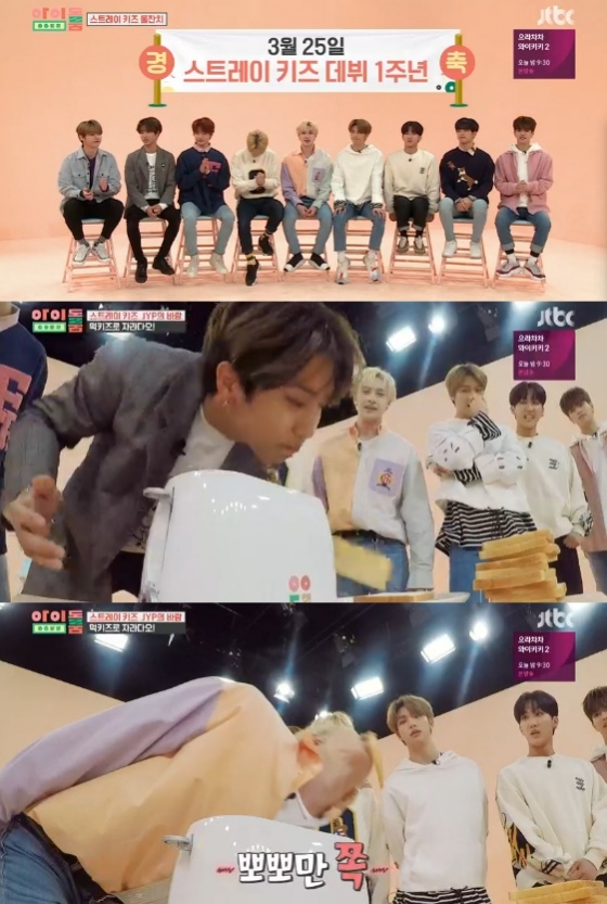 '아이돌룸'에서 그룹 스트레이 키즈의 '토스트 공중 물기' 미션에 실패했다.