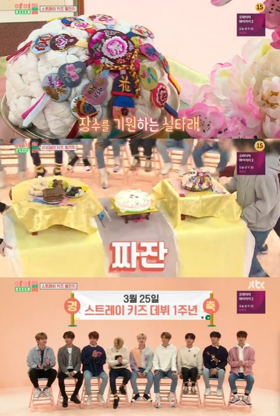 26일 오후 방송된 JTBC 예능 프로그램 '아이돌룸'에서 JYP 소속 스트레이 키즈의 데뷔 일주년 돌잔치가 열렸다.