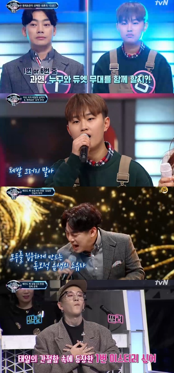 마지막까지 살아남은 미스터리 싱어는 1번과 6번이었다. 환희와 린은 함께 무대를 꾸밀 미스터리 싱어로 6번을 최종 선택했다. 다음으로 1번 확인 무대가 펼쳐졌고, 1번은 모두를 감동 시킬 만한 실력을 가진 실력자였다.