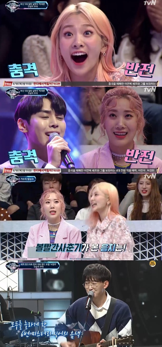 5일 오후 방송된 tvN 예능 프로그램 '너의 목소리가 보여 6'에서는 음치와 실력자를 가리기 위해 고군분투하는 '오늘의 초대 가수' 볼빨간사춘기와 패널들의 모습이 담겼다.
